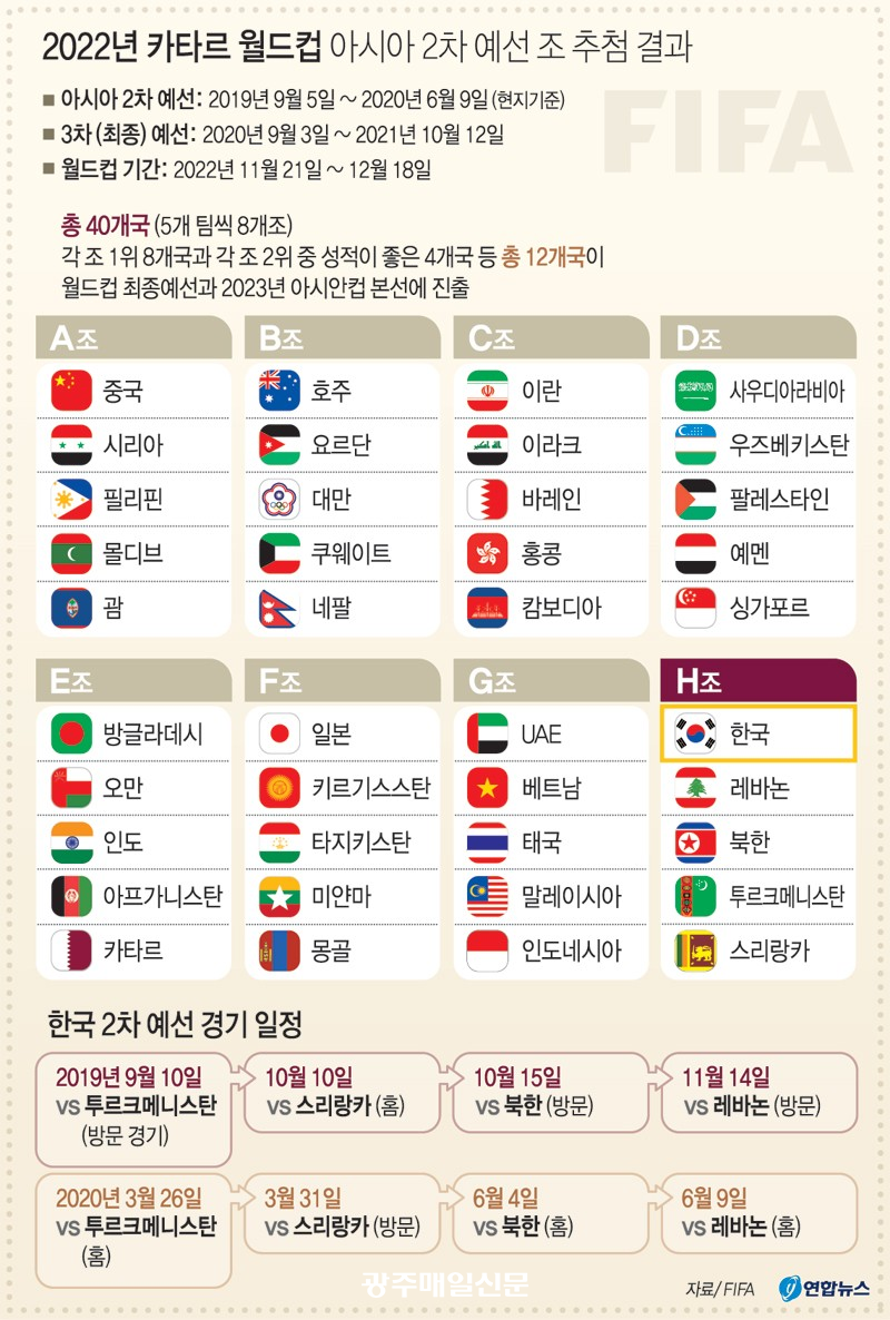 월드컵 최종예선 대진표 - 2022년 카타르 Fifa 월드컵 예선 조 편성 경기 일정 결과