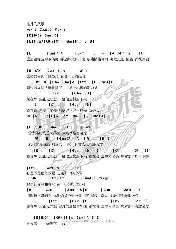 吉他譜 蘇打綠 牆外的風景 展指高飛木吉他工作室 台北市吉他教學內湖區木吉他fingerstyle 彈唱演奏教學招生中 痞客邦